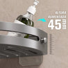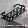 MULTIFUNCTIONAL STORAGE RACK - Provides ample storage space for shower essentials such as shampoo, conditioner and soap. Bottom features two removable hooks for hanging towels, sponges and other items.